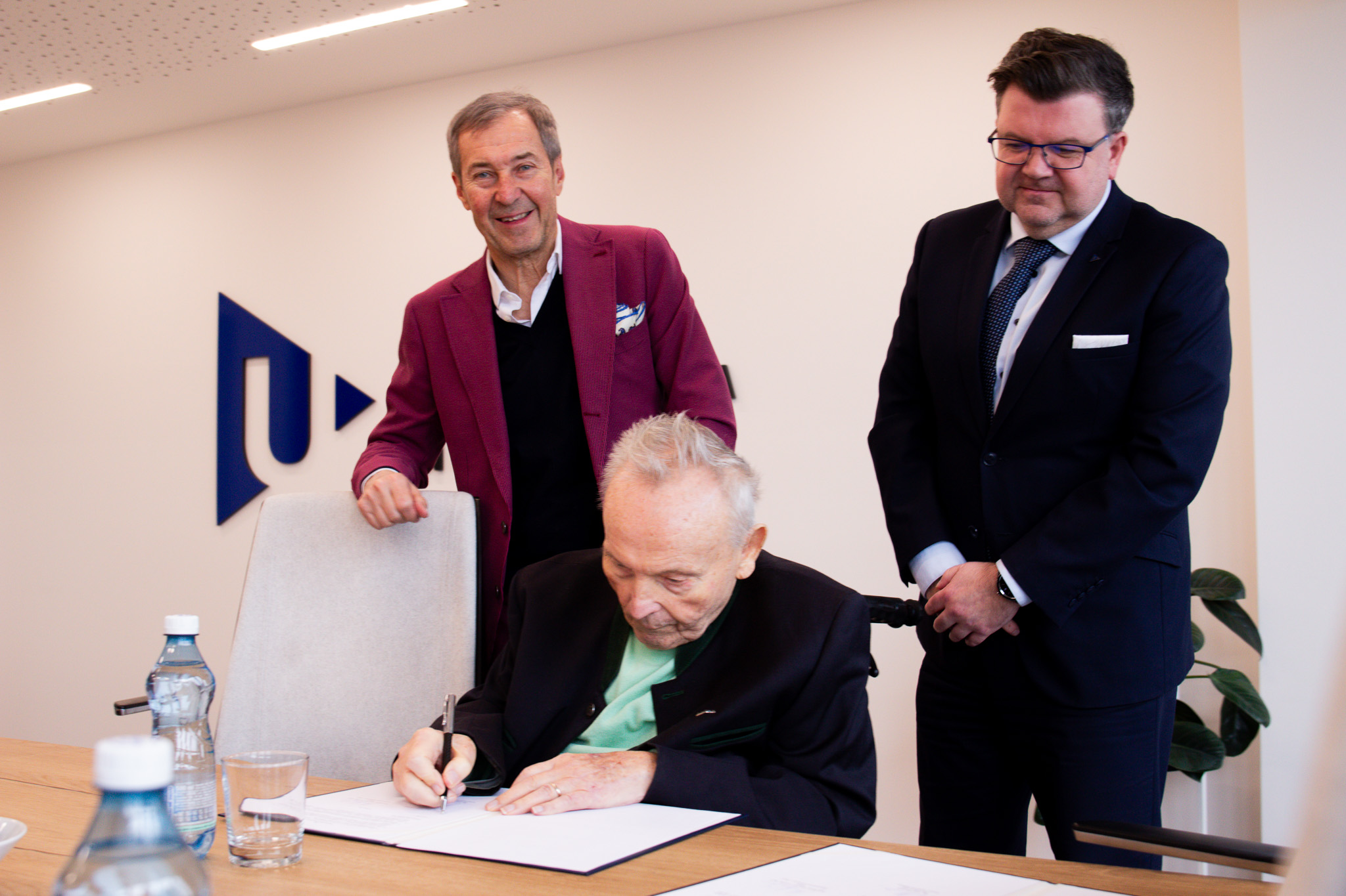 Zleva: jednatelé InterCora Ivan Hlaváček a Günther Zembsch, rektor ZČU Miroslav Lávička