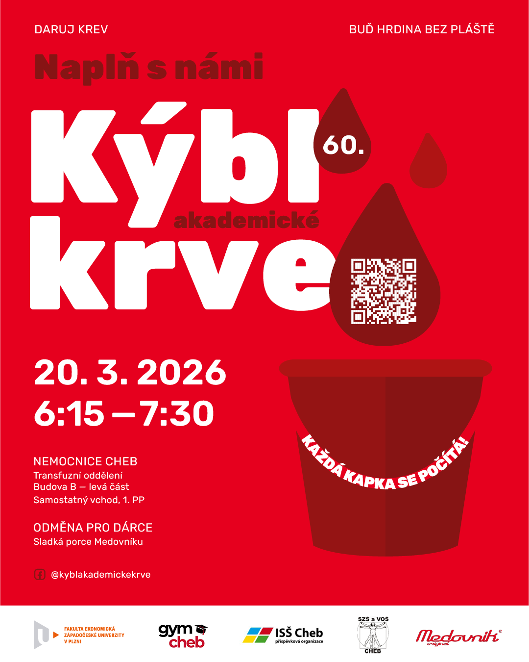 The Faculty of Economics of the University of West Bohemia invites you to the traditional Bucket of Academic Blood on Friday, March 20. You can donate the life-giving fluid at the Transfusion Department of the Cheb Hospital from 06:15 to 07:30. Three high schools from Cheb will also participate.