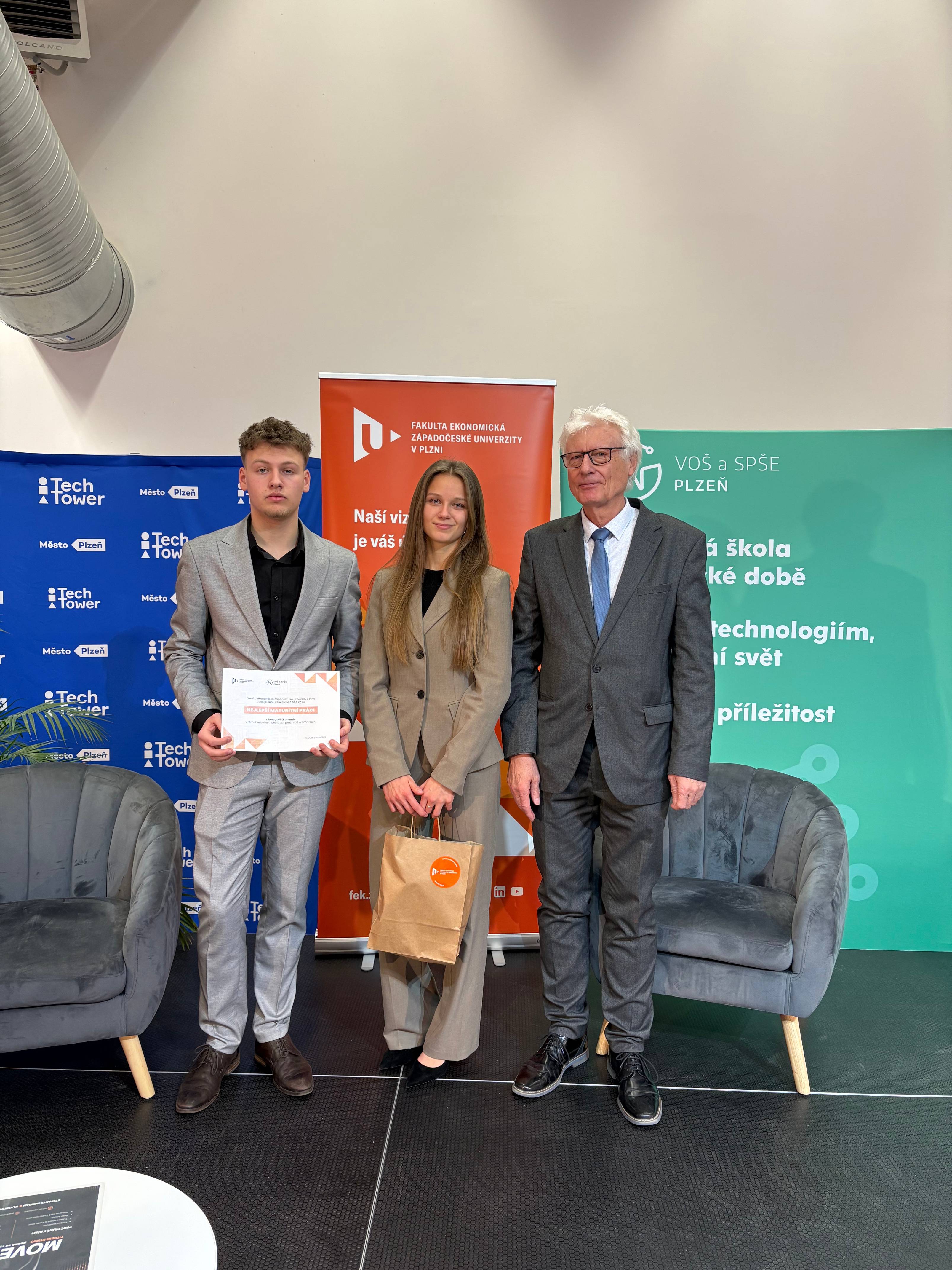 Awards were presented to the most outstanding projects in IT, economics, and electrical engineering. In the IT category, Václav Šmejkal stood out with his WHY2 encryption system. The top economics prize went to Adam Boháč and Matěj Kulhavý for their business plan for a transport company. At the same time, Adam Průha took first place in electrical engineering with his digital clock.