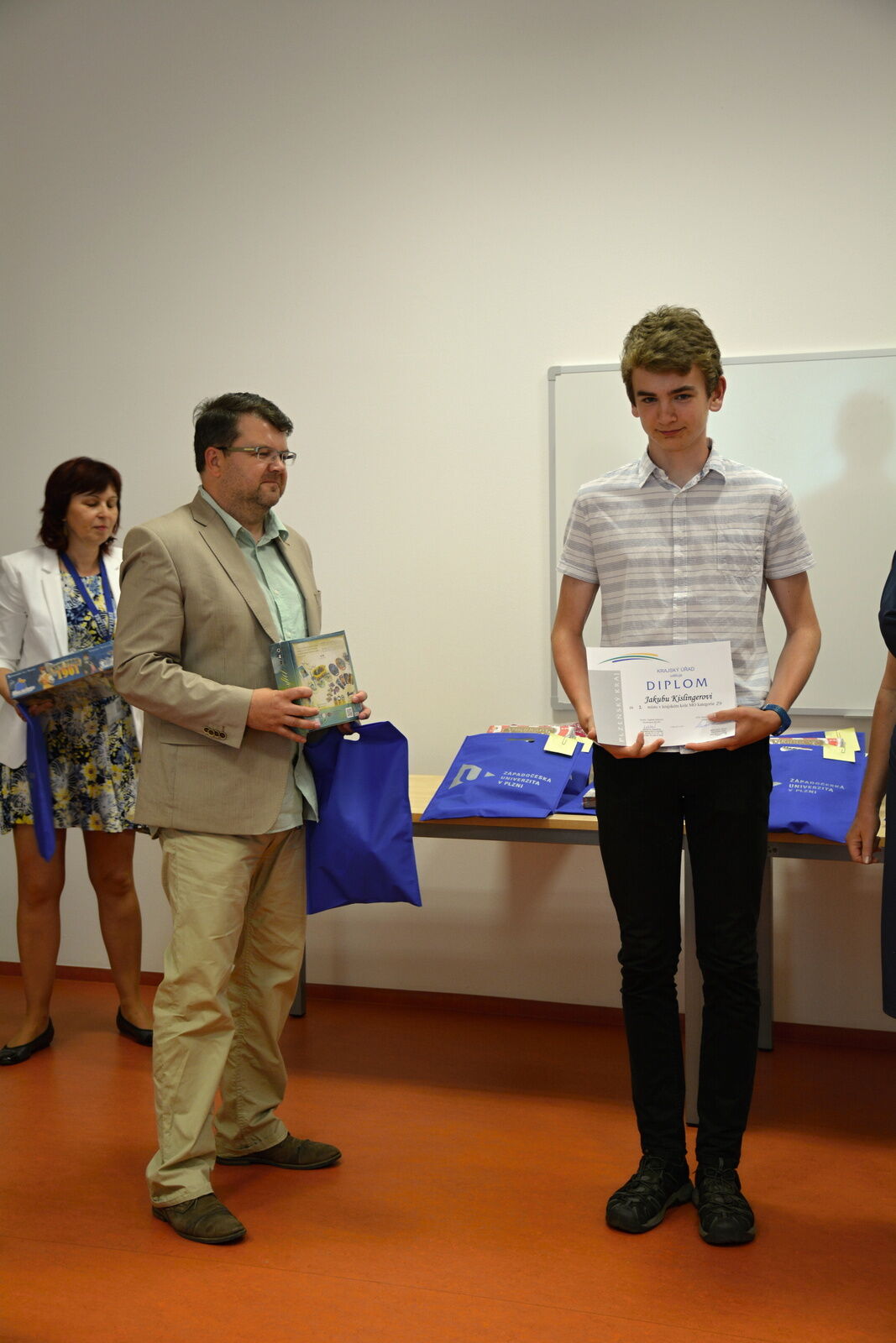 Předávání cen se účastnila předsedkyně krajské komise matematické olympiády, prorektoři ZČU, děkanka a proděkani FAV a pracovníci katedry matematiky. Z jejich rukou převzala ocenění a věcné ceny celkem dvacítka řešitelů v pěti soutěžních kategoriích.